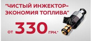 * Полная стоимость чистки форсунок инжектора с рядным расположением 4-х цилиндрового двигателя составляет 435 грн. с НДС, с рядным расположением 6-ти цилиндрового двигателя составляет 870 грн. с НДС, с V-образным расположением 8-ми цилиндрового двигателя составляет 435 грн. с НДС. Акционная цена включает в себя стоимость расходных материалов, необходимых для очистки.