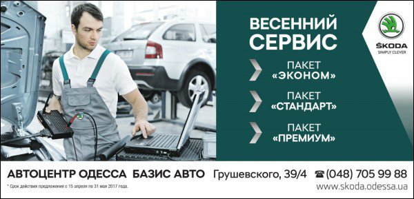 Официальный Сервисный Центр SKODA компании АВТОЦЕНТР ОДЕССА БАЗИС АВТО объявляет о запуске акции ВЕСЕННИЙ СЕРВИС!.