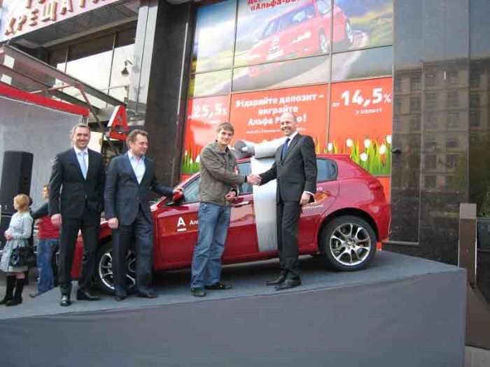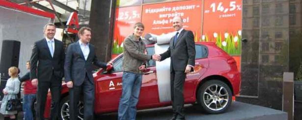Окончания акции, длившейся с 2 марта по 17 апреля, с нетерпением ожидали тысячи вкладчиков Альфа-Банка по всей Украине: по ее итогам банк разыгрывал роскошный автомобиль Alfa Romeo 147.