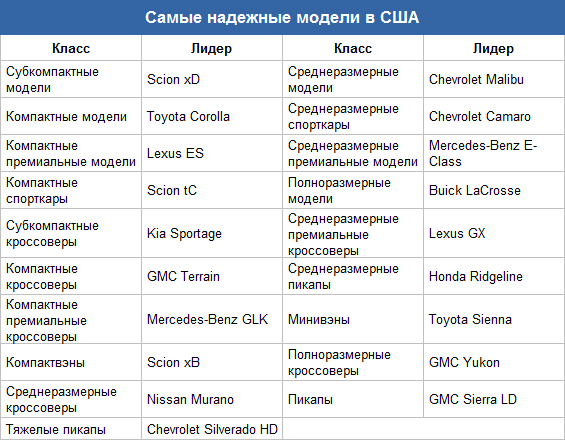 При составлении списка эксперты провели опрос среди владельцев автомобилей 2012 года выпуска. Водителей просили назвать основные проблемы, которые возникали с их транспортными средствами на протяжении последних 12 месяцев. Степень надежности определялось количеством неисправностей на 100 автомобилей марки.