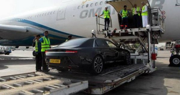 Компания Aston Martin показала первые изображения своего нового люксового седана Lagonda. Снимки были сделаны во время транспортировки новинки в Оман, где автомобиль будет проходить дорожные тесты в условиях высоких температур, сообщает .