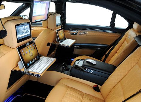 Салон новинки также был модернизирован: сиденья обшиты кремовой кожей, а в багажнике установлен компьютер компании Apple, который является частью продвинутой мультимедийной системы "iBusiness" с тремя мониторами, возможностью подключения iPad и управления всеми ее функциями с помощью iPhone.