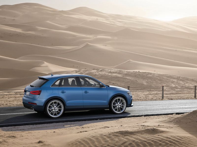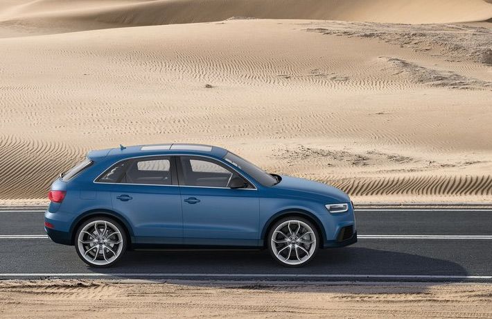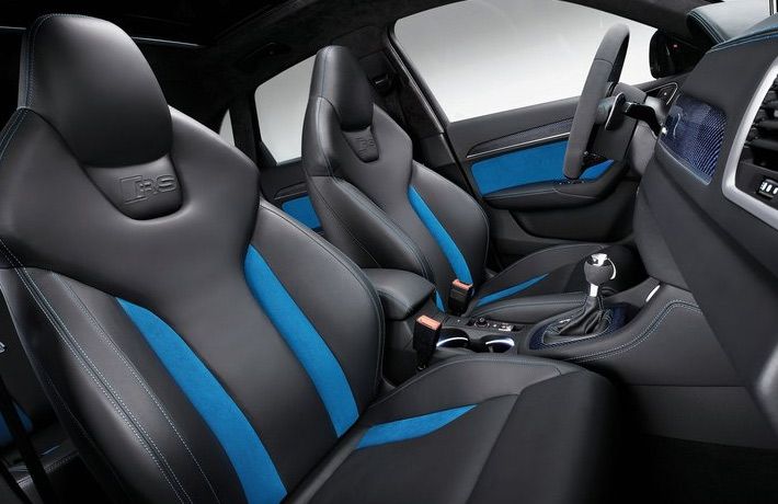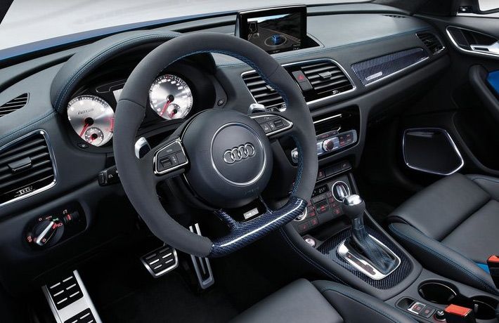 RS Q3 на 25 мм ниже серийного паркетника. Автомобиль получил новые колесные диски и дополнительные детали в экстерьере. Модель, которую покажут в Пекине, окрашена в синий цвет Ordos Blue.