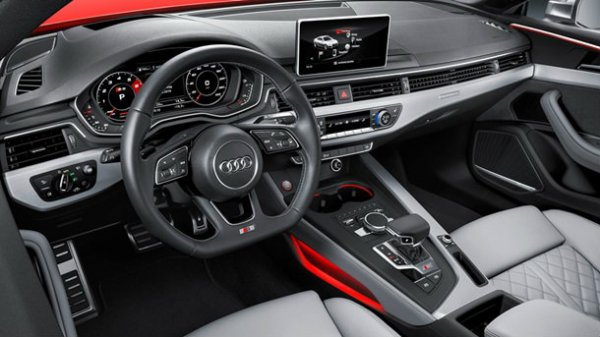 Дизайн модели лишь отчасти напоминает предыдущую А5. При этом оснащение предполагает светодиодные матричные фары головного света, цифровую приборную панель Virtual Cockpit с 12,3-дюймовым экраном, мультимедийный комплекс MMI с 8,3-дюймовым дисплеем на центральной консоли и тач-падом, который поддерживает системы Apple Car Play и Android Auto.
