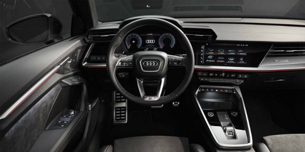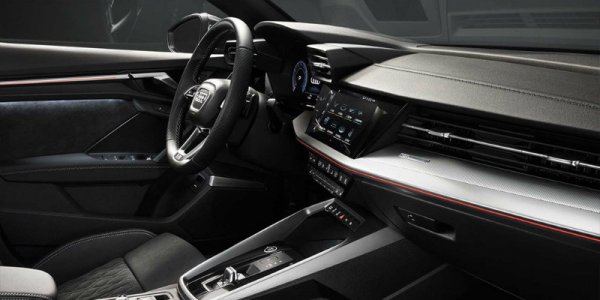 Для увеличения запаса пространства над головой водителя передние сиденья у A3 установлены ниже, чем у предшественника. Уже в базе у седана устанавливается 10,1-дюймовый дисплей, встроенный в переднюю панель. Также новинка комплектуется цифровой приборной панелью и мультимедийной системой MMI Navigation Plus третьего поколения.