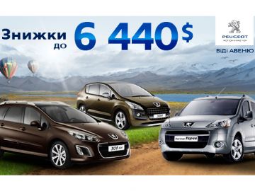 **Предложение действует c 01.08.2012 до 31.08.2012 г. на автомобили, которые находятся на складе в Украине. Ценовое предложение распространяется только на ограниченное количество автомобилей. Подробную информацию можно получить в официальном сервисном центре Peugeot «ВиДи Авеню» по телефону (044) 591-30-00 или обратившись по адресу: Киевская обл., Киево-Святошинский р-н., с. Софиевская Борщаговка, ул. Большая Кольцевая, 60.