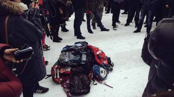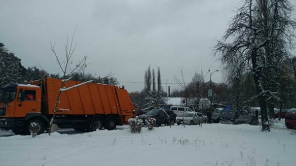 У здания также припаркованы десятки автомобилей активистов и один мусоровоз.
