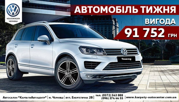 Дізнайтеся деталі пропозиції тижня в автосалоні «КарпатиАвтоцентр» за адресою м.Чернівці, вул.Енергетична 2-В, тел. (0372) 543 888, 096 374 44 55.