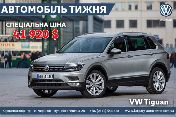 Тільки протягом одного тижня автосалон «КарпатиАвтоцентр» надає спеціальне ціноутворення на VW Tiguan Highline.
