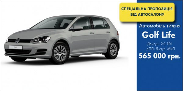 В рамках проекту від офіційного дилера Volkswagen в Хмельницькому ТОВ “Престиж-Авто”, сьогодні у Вас є унікальна можливість придбати Volkswagen Golf Life на ексклюзивних умовах.