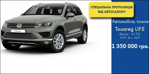 В рамках проекту від офіційного дилера Volkswagen в Хмельницькому ТОВ “Престиж-Авто”, сьогодні у Вас є унікальна можливість придбати Volkswagen Touareg Life на ексклюзивних умовах.
