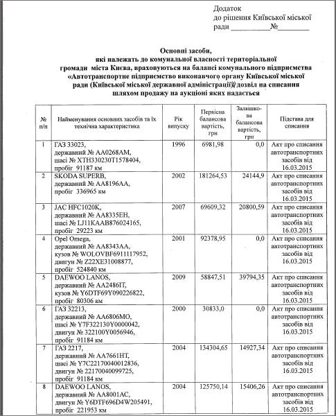 - 16 авто в неудовлетворительном состоянии из автопарка горадминистрации будут выставлены на аукцион. Такое решение поддержала бюджетная комиссия Киевсовета, - написал он на своей странице в "Фейсбуке". - Инженеры предприятия констатировали нецелесообразность ремонта этих машин, поскольку их возраст - от 6 до 19 до лет. Примечательно, что у трёх ВАЗов совпал километраж пробега (91 180 км) – будто их эксплуатировали в цирке и они одновременно ездили по кругу.