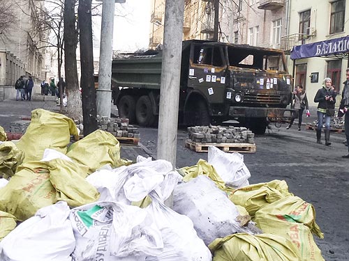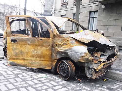 Столкновения, которые произошли в центре Киева на прошлой неделе, были настоящей войной. Описать подвиг павших героев Небесной Сотни еще предстоит историкам. Но оценить силу людей можно уже сейчас. Улицы вокруг майдана усеяны остовами сгоревших авто. Наш корреспондент насчитал 20 автомобилей, которые пока еще напоминают о кровавых событиях 18 и 20 февраля, сообщает .