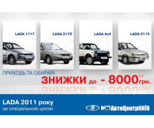 С марта АО «УКРАВТОВАЗ» – эксклюзивный дистрибьютор марки LADA российской сборки в Украине объявил о старте акции на автомобили 2011 г.в., включая семейства LADA Samara, LADA 4х4, LADA Kalina 1117/1119 и LADA Priora 2170/2171/2172.