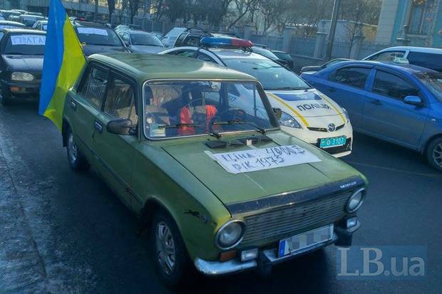 Они остановились друг за другом, включив аварийные сигналы. Своей акцией водители пытаются привлечь внимание к законопроекту №5567 об урегулировании транзита и временного ввоза автомобилей с иностранной регистрацией для личного пользования.