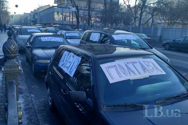 Около четырех десятков автомобилей с польскими, датскими, литовскими номерами перекрыли в четверг утром две полосы улицы Грушевского возле Верховной Рады (в сторону Европейской площади), сообщает .