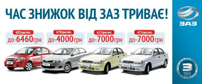 «бестселлеры» украинского автомобильного рынка – модели ЗАЗ Lanos и ЗАЗ Sens, которые продолжают быть доступными покупателю со скидками до 7100 грн!.