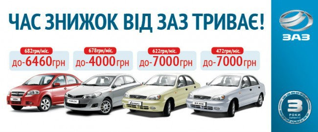 Автомобили ЗАЗ VIDA, Forza, Lanos и Sens доступны покупателю со специальными скидками на каждую модель, и с выгодной возможностью покупки в кредит под 3,99% годовых!.