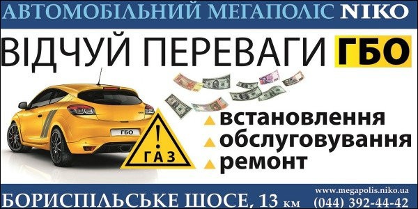 «Автомобильный Мегаполис НИКО» на Бориспольском шоссе предлагает альтернативу дорогому бензину.На СТО Мегаполиса на автомобили любых марок можно установить газобалонное оборудование, которое поможет экономить буквально на каждом километре. Теперь на заправку вы будете заезжать только ради кофе.