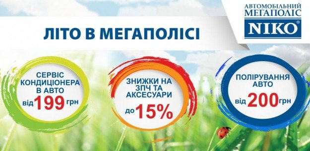 Подробней о сервисе «Автомобильного Мегаполиса НИКО» и акции «Лето в Мегаполисе» можно узнать по телефону 044 392 99 99, а также в автосалонах на 13-м километре Бориспольского шоссе.