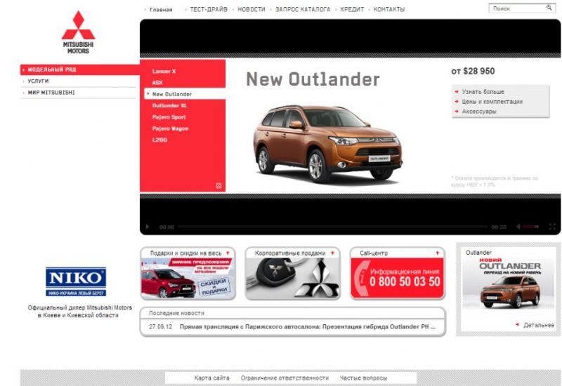 Компания «НИКО-Украина Левый Берег», официальный дилер Mitsubishi Motors в Киеве и Киевской области, представляет своим клиентам новый сайт, который стал еще удобнее и функциональнее прежнего.