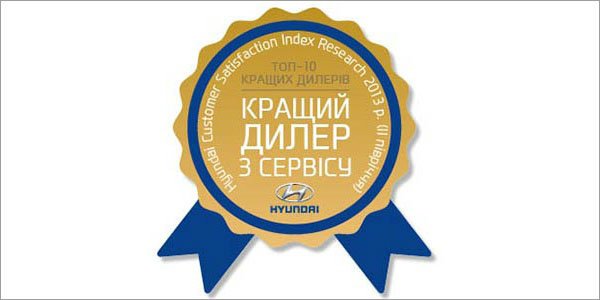 Награда «Лучший дилер по сервису» присваивается дилерским предприятиям дистрибьютора, которые вошли в ТОП 10 лучших дилеров по сервису согласно мнения владельцев автомобилей Hyundai, высказанного при проведении исследования Индекса Удовлетворенности Клиентов Hyundai (Hyundai Customer Satisfaction Index Survey – HGSI Research)*.