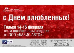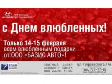 На День Влюбленных Вам всегда хочется сделать особенный подарок любимому человеку? Компания ООО «БАЗИС АВТО» искренне поздравляет со светлым и чудесным праздником - ДНЕМ ВЛЮБЛЕННЫХ и желает прекрасного настроения, и всегда только взаимной любви!.