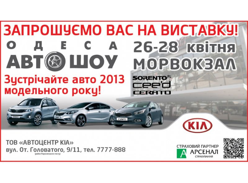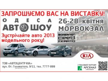 АВТОЦЕНТР КИА приглашает всех одесситов и гостей города посетить стенд KIA на - выставке Одесса АВТОШОУ, которая пройдет с 26 по 28 апреля в выставочном комплексе Одесского морского торгового порта.