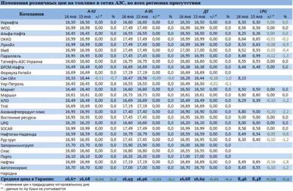 "Необходимо отметить, что на валютном рынке в последние дни возобновился рост курса доллара. По оперативным данным, 16 января доллар на рынке реальных продаж преодолел отметку 20 грн и торговался в среднем по 20,20 грн. Операторы рынка ожидают дальнейшего сползания курса гривни. В этой связи велика вероятность возобновления роста цен на нефтепродукты, как полностью валютные товары, закупаемые по импорту. Если курс твердо преодолеет отметку 20 грн/доллар, рост цен возобновится", – подытоживает эксперт.