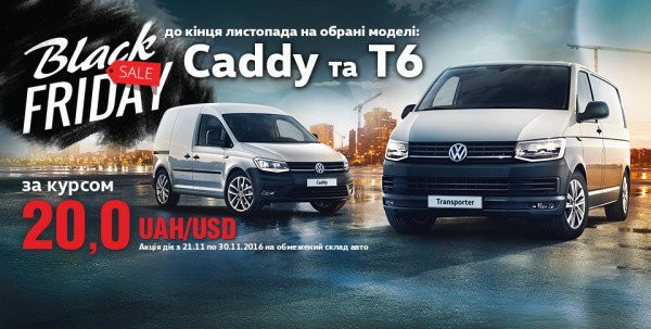Тільки до 30 листопада скористайтеся акційним ціноутворенням на обмежений список комерційних моделей Volkswagen за фіксованим курсом 20.0 грн. / 1 долар США..