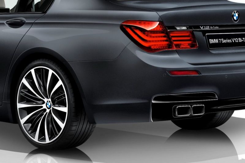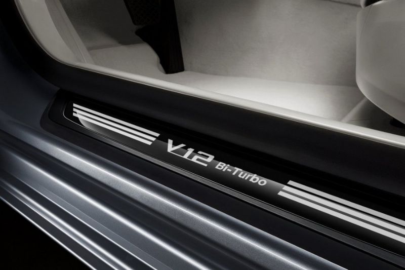 На фоне стоковой машины модель BMW 7-й серии V12 Bi-Turbo выделяется наличием аэродинамического обвеса от подразделения M GmbH, 21-дюмовых легкосплавных дисков и значков "V12 Bi-Turbo" и "M". Завершают внешние преображения покрытые хромом патрубки выхлопной системы и решетка радиатора. В список штатного оснащения автопроизводитель включил отделку интерьера кожей Nappa с контрастной красной строчкой и 1 200-ватнную стереосистему Bang&Olufsen с 12 динамиками.