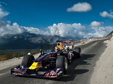 Болид команды Формулы-1 Red Bull образца 2005 года проехал по самой высокой автомобильной дороге в мире — гималайскому перевалу Кхардунг Ла, находящемуся в Ладакхских горах, сообщает .