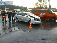 На въезде с Бориспольской трасы на Харьковскую площадь столкнулись Chevrolet Lacetti и микроавтобус Mercedes, сообщает .