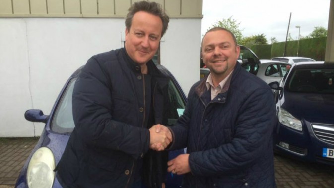Салон Witney Used Car Centre, торгующий подержанными машинами, расположен в Минстер Ловелле, в 120 километрах от Лондона. В пятницу вечером в салон позвонила охрана Кэмерона, попросила хозяина задержаться на работе на полчаса, до 17:30, и сообщила, что премьер-министр придет осматривать машину лично. Харрис подумал, что его разыгрывают друзья, но когда в 17:32 в салон действительно приехал Кэмерон, он понял, что «все происходит на самом деле».
