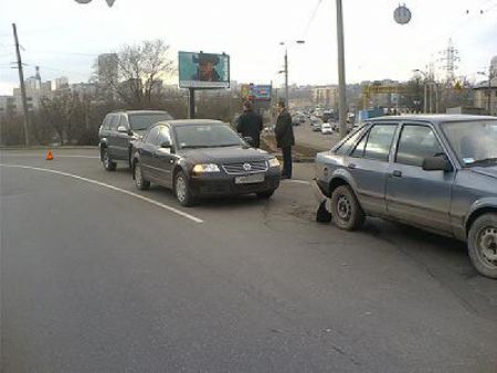 В этом импровизированном crash-test’е победителем стал Passat, у которого остались лишь царапины на обоих бамперах. К тому же, он единственный из трех автомобилей оказался застрахованным. Спустя 40 минут подъехала ГАИ и оформила это происшествие.