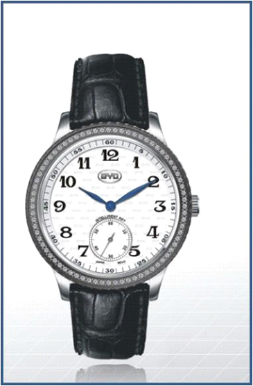 Новейшая разработка BYD представляет собой кварцевые часы, в которых применена уникальная технология покрытия пластика металлом SBYD. Данную технологию компания BYD (Mobile подразделение) давно использует в производстве комплектующих Nokia и Motorolla. С помощью этой технологии высокочастотная антенна может быть помещена в пластиковый корпус часов без угрозы повреждения, одновременно сохраняя качество приема и передачи сигнала. Этот же пластиковый корпус надежно фиксирует и механизм часов.
