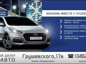 В рамках акции, предлагаем всем владельцам автомобилей Hyundai подготовить свой автомобиль к зимнему периоду, любой владелец автомобиля Hyundai может провести проверку своего авто по 12 пунктам за 180 гривен*.