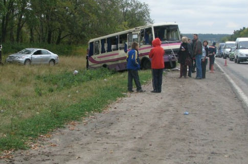 Авария случилась на трассе "Киев-Знаменка-Каменка". Водитель автобуса не справился с управлением и автобус съехал в кювет, после чего перевернулся.