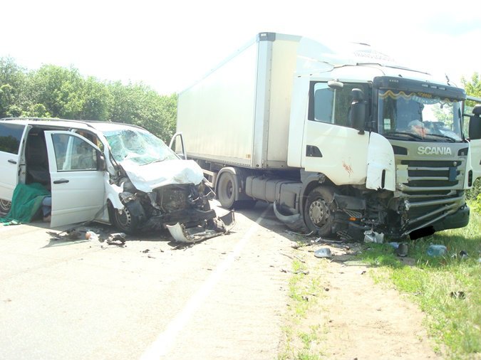 Сегодня, около 10 утра, в Черкасской области на трассе "Киев-Знаменка" грузовик Scania столкнулся с микроавтобусом Mercedes Vito, сообщает .