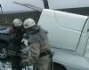 Чтобы предотвратить возможный взрыв или возгорание автомобилей, спасатели провели смыв с проезжей части топлива, которое вытекло в результате столкновения.
