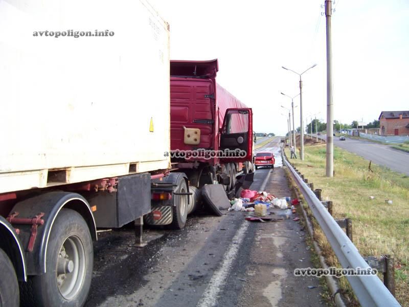 Как рассказал водитель грузовика Вольво, он двигался в правом ряду, внезапно перед ним резко затормозил красный ВАЗ-2107, он применил экстренное торможение, но избежать столкновения не удалось. По словам же водителя «семерки» в момент аварии пошел ливень, и он, так как было плохо видно дорогу, притормозил, и тут почувствовал удар… В это время позади грузовика остановился желтый ВАЗ. Когда его водитель понял, что грузовик стоит на месте, он вывернул руль влево, и это его спасло от верной гибели. Тут же ему в зад влетел грузовик, который двигался за ним. Так как колеса были вывернуты влево, от удара ВАЗ вылетел в левую полосу, а грузовик заехал под прицеп Вольво. Если бы ВАЗ остался «между молотом и наковальней» он превратился бы в лепешку без крыши… К счастью, обошлось.