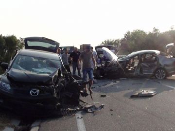 По предварительным данным водитель автомобиля ВАЗ-21140 (гражданин Азербайджана) по неизвестным причинам выехал на полосу встречного движения, где совершил столкновение с автомобилем Volkswagen Passat. После этого автомобиль Volkswagen выехал на полосу встречного движения и столкнулся с автомобилем Мazda CX7.