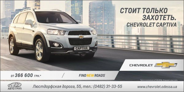 Официальный дилер Chevrolet в Одессе, компания ООО "АВТО ГРУПП" только сейчас предоставляет возможность приобрести абсолютно универсальный автомобиль по цене от 366 600 грн. Детали уточняйте у менеджеров автосалона.