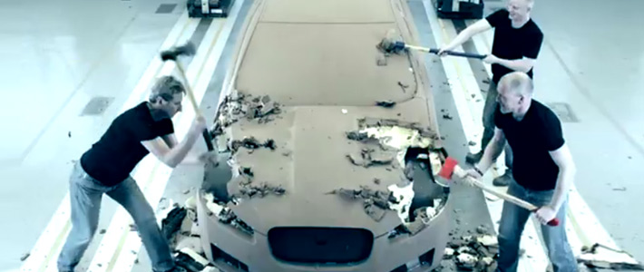 Не хранить ведь кучу глиняных машин (в натуральный рост) в штаб-квартире компании или в дизайнерском центре. Да и в музее производителя тоже не место таким макетам… Да, вы правильно подумали — их уничтожают. Компания Jaguar продемонстрировала, как именно это происходит, на примере глиняного макета седана XF 2012 модельного года.
