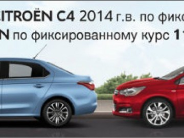 В июне Citroёn добавляет к перечню преимуществ еще и максимально привлекательную цену, пересчитанную по фиксированному курсу 10,8 грн./1$, который значительно ниже коммерческого курса (11,85). Июньская цена Citroёn C4 - выгоднее на почти 23 тыс. грн.! Данное предложение действует до 15 июня на ограниченное количество автомобилей Citroёn C4 2014 г.в., которые находятся на складах в Украине.