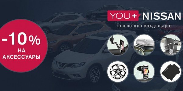 *Специальное предложение действует с 01.12.2015 по 31.03.2016. Скидки не суммируются с другими акциями и действительны в отношении имеющегося в наличии ассортимента аксессуаров. Специальное предложение касается только владельцев автомобилей Nissan, зарегистрированных на портале You+Nissan. Подразумевается предоставление 10% скидки от рекомендованной розничной цены. Условия специального предложения могут меняться. Детали уточняйте у консультантов.