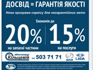 З початку квітня і до кінця грудня поточного року, власники автомобілів брендів ЗАЗ і ВАЗ, можуть отримати дисконт до 20% на запасні частини і до 15% на послуги офіційного сервісу на СТО ЗАЗ Автоцентру на Кільцевій.