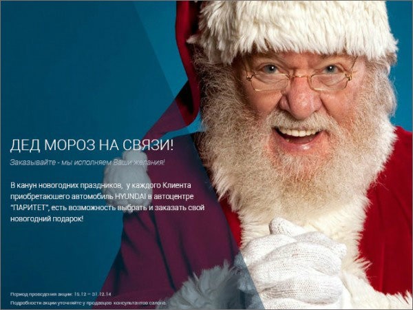 * - Клиентом является каждое физическое или юридическое лицо, которое заключило договор купли-продажи нового автомобиля HYUNDAI  в автосалоне ООО "ПАРИТЕТ", с 15.12 по 31.12.2014 года.