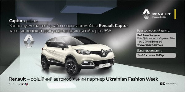 Следуя глобальной стратегии бренда, компания Renault в Украине стала официальным автомобильным партнёром самого крупного модного события - Украинской недели моды (UFW).