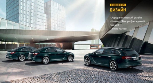 1. Opel Insignia New в кузове седан в комплектации Cosmo c 2-х литровым турбированным бензиновым двигателем нового поколения мощностью 250 л.с., полным приводом и 6-ступенчатой автоматической коробкой передач. Крутящий момент составляет внушительный 400 Нм, а разгон до 100 км/ч занимает всего 8,6с.
